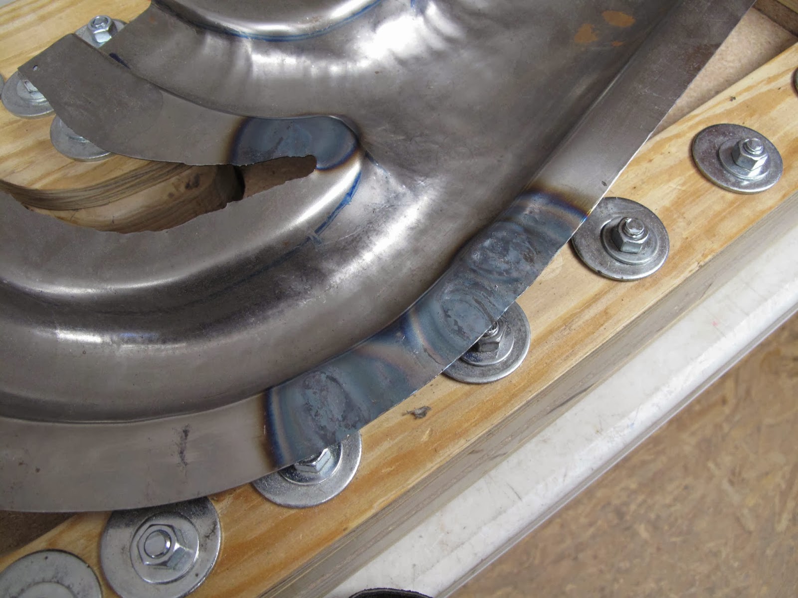 The original form block is still making good parts, but several people asked me about making manifolds for their engines. There are some changes I wanted to make to improve the process so this seemed a good time to make a new form block. The changes are small, like some added length to the inlet ends, better bolt locations and the use of hardwood for the outer (working) layers. I also only waxed the radii the metal slides on during forming to hopefully get a better grip on the flanges.